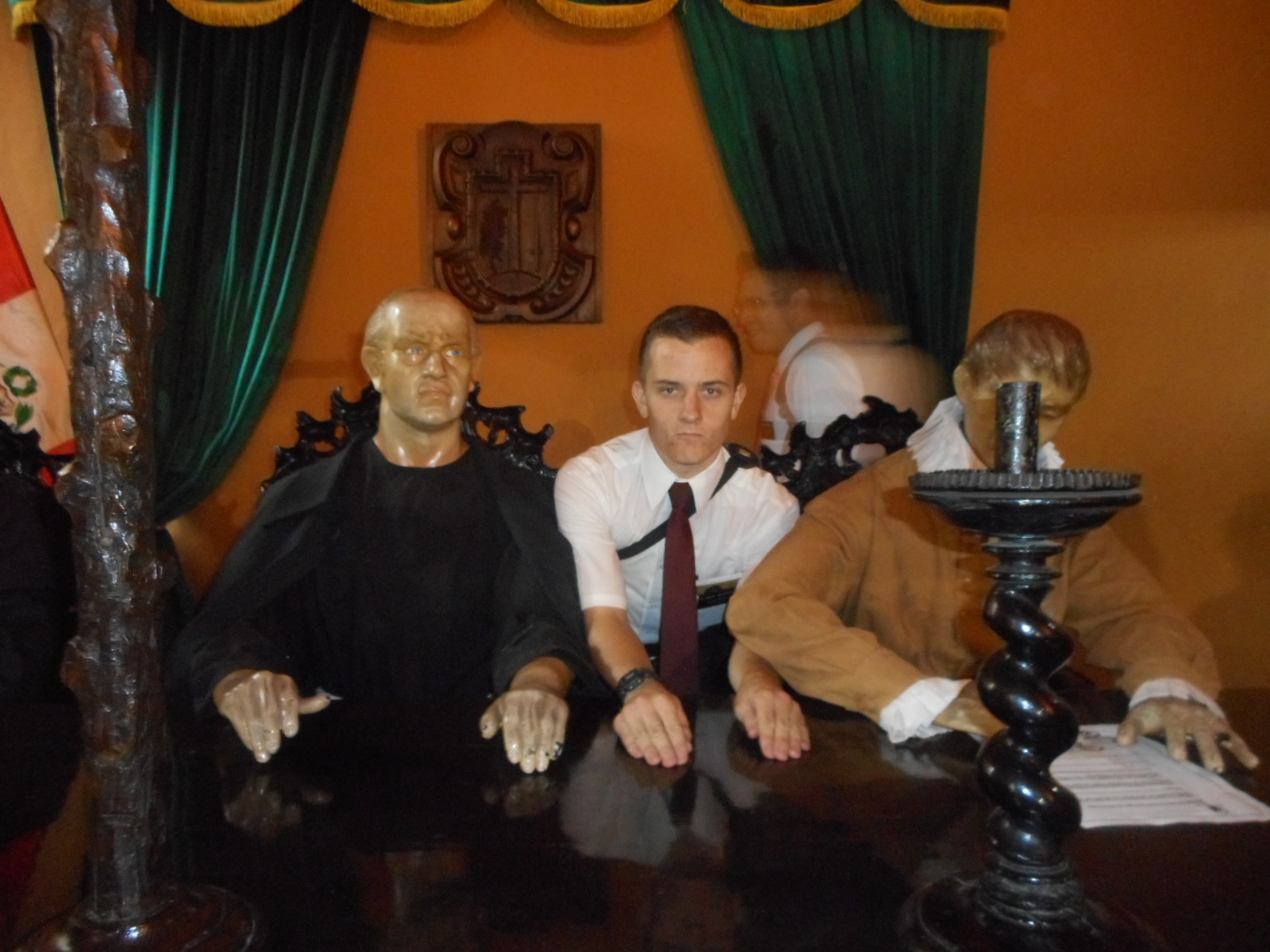 Friday was the big wedding day of the couple we helped to get married so they can get baptized. It was in Parque de Las Aguas, which is this huge awesome park in the center of Lima with all these fountains that do way cool things. Normally the missionaries can't go, but this was an exception. And it was Dang Awesome. We had no idea how to get there, but like the old saying says, “asking around, you can make your way to Rome”. We got there, and on the way, took pics with the famous Estadio Nacional, this huge big soccer stadium. The park had all these cool fountains, including a tunnel of water that you could stand under without getting wet. The wedding was sponsored by the government, and I felt like I was at one of those high-end “Great Gatsby” style millionaire parties. Everyone was dressed super fancy, with military police guards standing at attention, with fancy spot lights and decorations, etc. The fountains at night were all lit up with different bright colors.